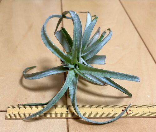 チランジア・カプトメデューサです。 百均で見つけて数年前に購入しました。 銀葉種のつぼ形チランジアです。 育てやすいらしいですが、私は冬に窓際で寒さに当ててしまい、1株枯らしてしまった事があります(;_;) エアープランツの中でも更に寒がりなのかも…
