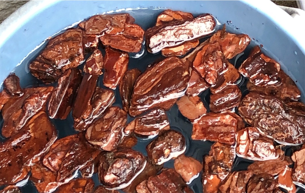 まずは、バークチップのアク抜きから。